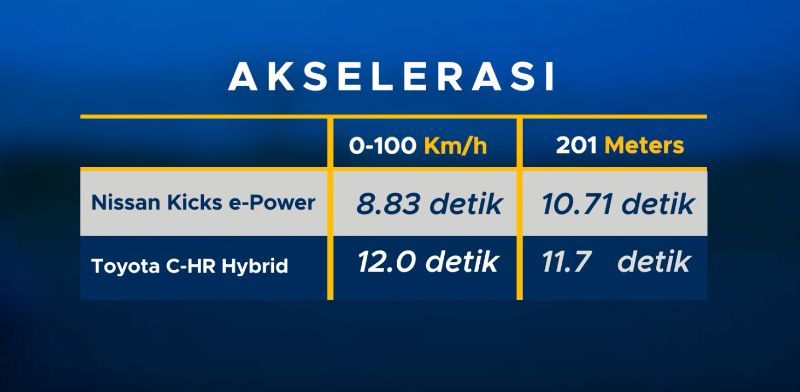 Review Nissan Kicks e-Power soal akselerasi, pun berlanjut dengan pengetesan drag race 201 meter. Hasilnya mobil ini mampu mencatatakan waktu 10,01 detik dan lagi-lagi jadi pemenang. Sementara Toyota C-HR Hybrid punya catatan 11,7 detik.